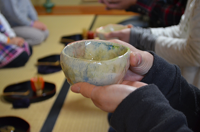 きりん組さんが、おうちの方をご招待して、自分で作ったお茶碗でお茶をたてます。